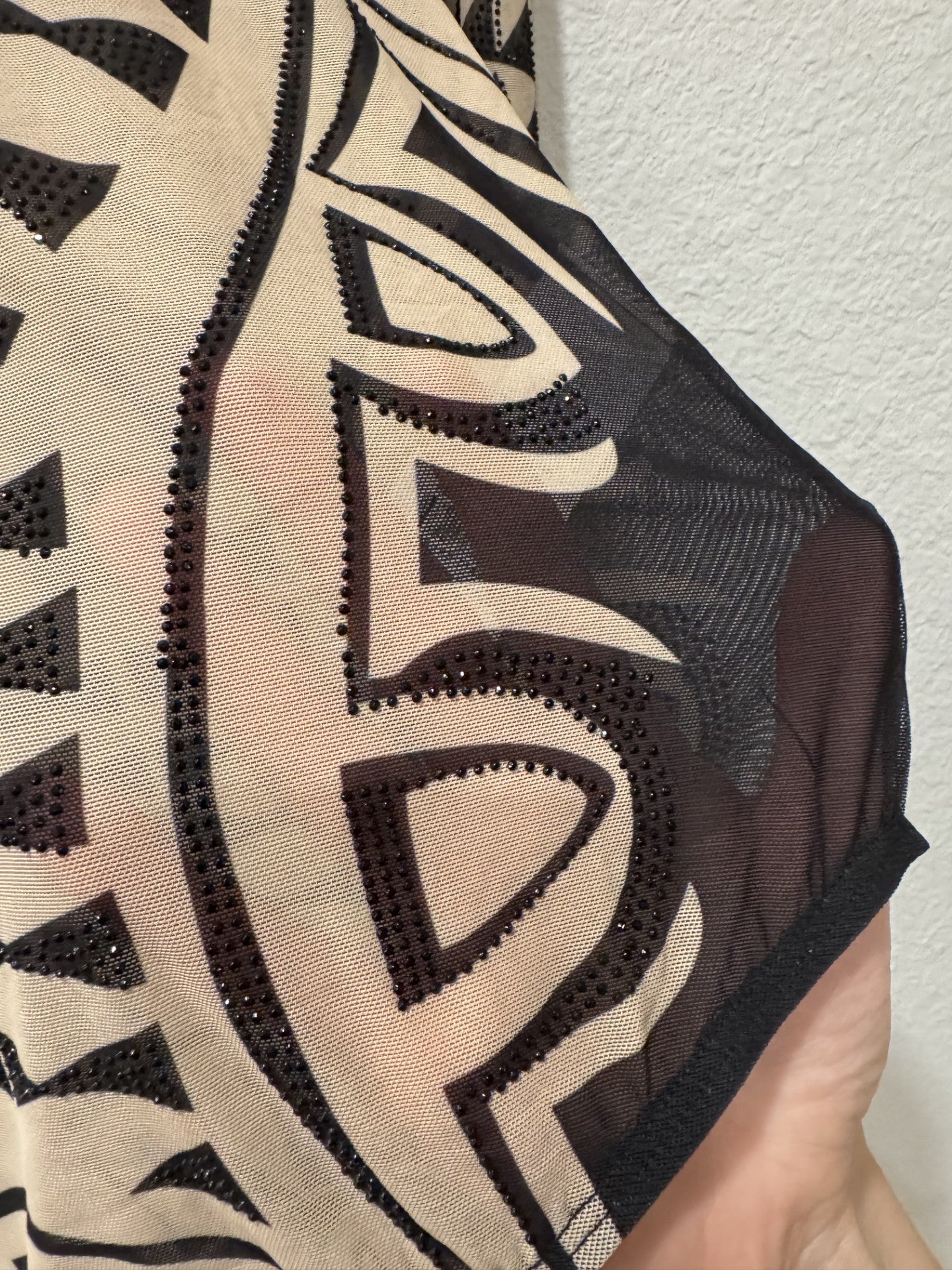 Women's Tribal Mock Neck Embellished Mesh Bodysuit Black / Brown